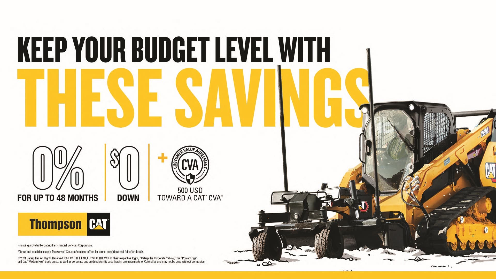 ON NEW CAT COMPACT WHEEL LOADERS, SMALL WHEEL LOADERS, SMALL DOZERS, TELEHANDLERS, AND BACKHOE LOADERS.